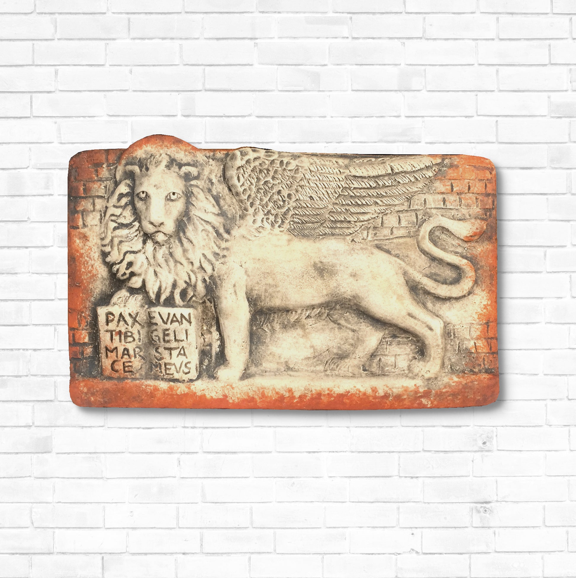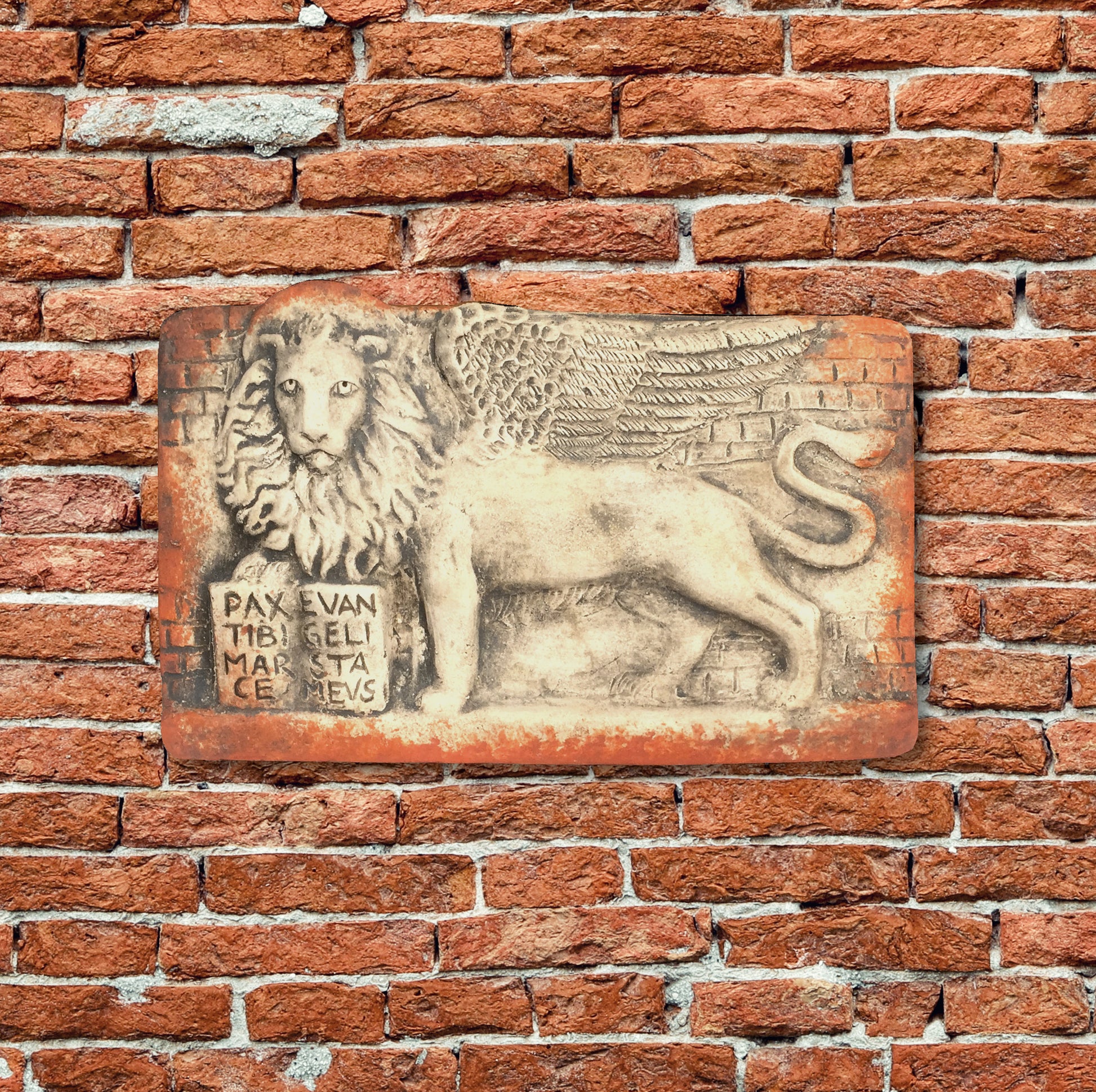 The winged Lion is the symbol of Venice, because the winged lion described in the book of Revelation (Rv. 4,7) was identified as being St Mark the Evangelist, buried in the main church of the city. After the Venetian “theft” of the holy relics in Alessandria in Egypt, a legend arose in which the Saint had a dream, while he was traveling across the Venetian lagoon. An angel revealed to St Mark that his body would have come to extreme and peaceful rest in Venice. Hence, the words “Peace to you, Mark, my Evangelist” that can be read, in Latin, on the open book. The winged Lion was placed by the Serenissima Repubblica di Venezia in every town of its rich dominium.