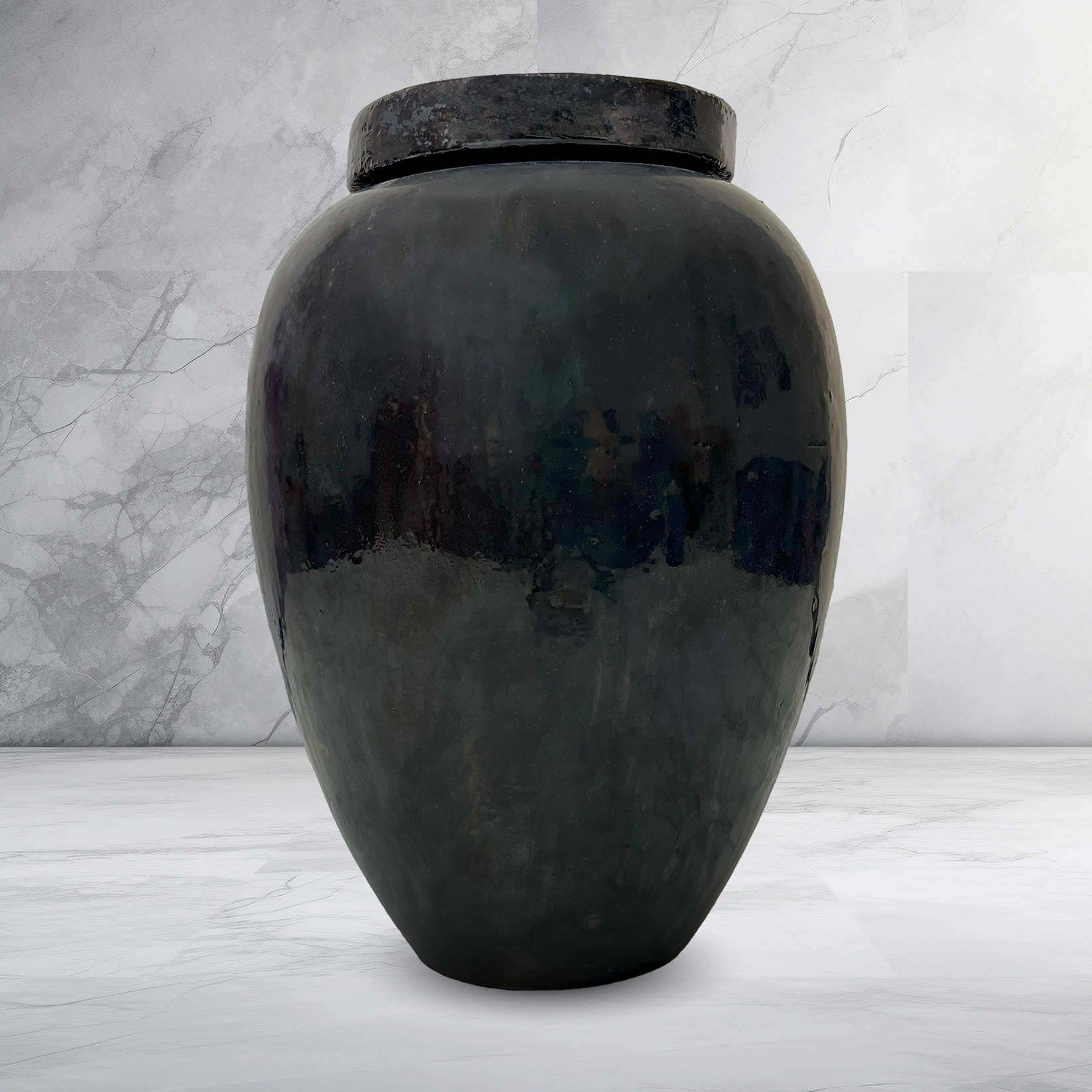 An extremely elegant glazed ceramic urn, entirely handmade with extreme attention to the detail.
